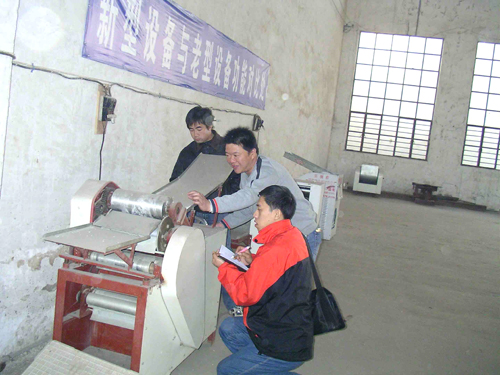 南陽客戶實地考察更換自動疊片燴面機南陽客戶實地考察更換自動疊片燴面機 南陽馬老板在10年前就開始做燴面片批發,最早用的一品鮮Hmj-3型設備,經過10年的辛苦經營,目前每天做面30多...[了解詳情]